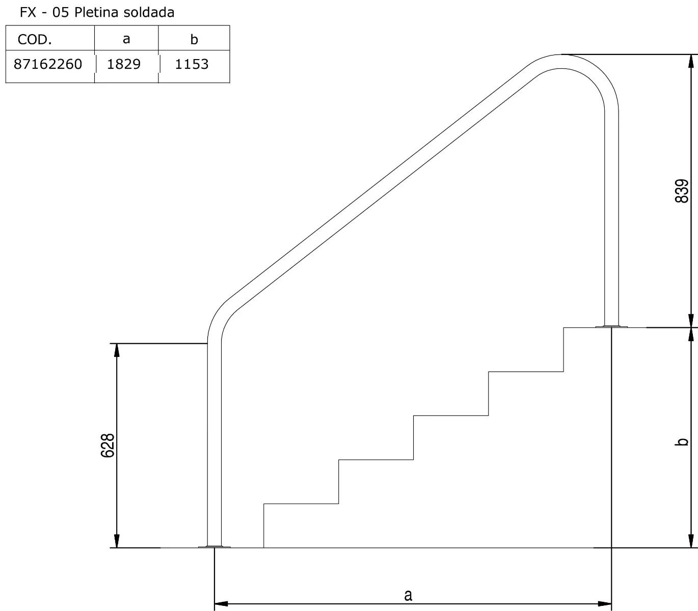 - Deze zwembadbeugel is gemaakt van AISI-316 staal, ø 43 mm buis