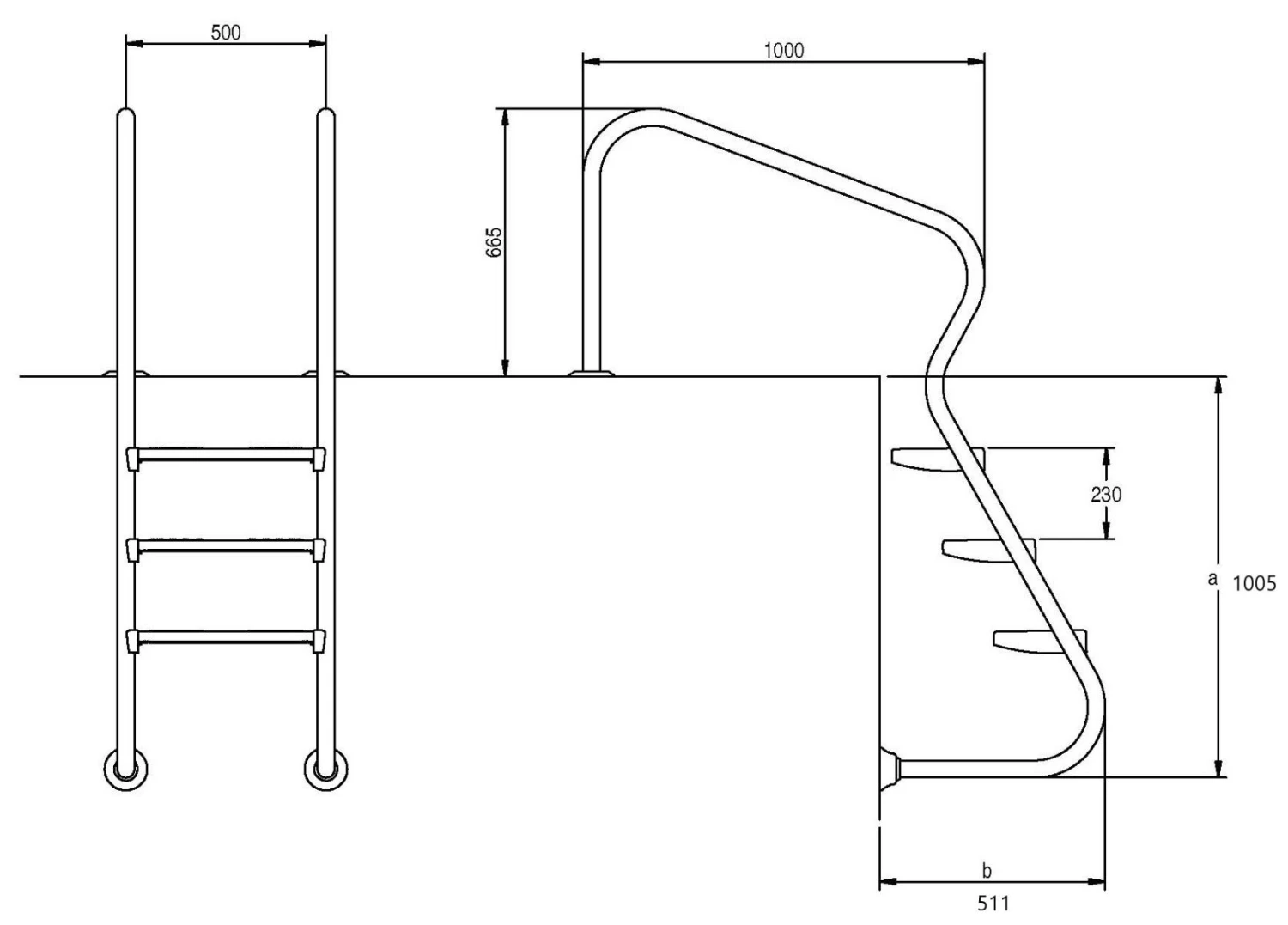 - De Easy access trappen zijn van roestvaststaal AISI 316, ø 43 mm buis, met dubbele veiligheids-antisliptreden