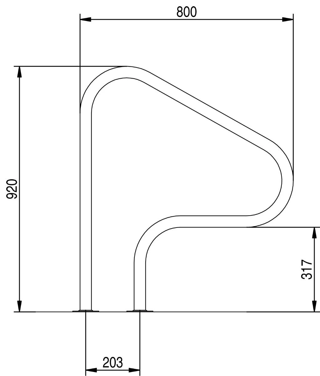 - De handrail is gemaakt van AISI-316 staal ø 43 mm buis
