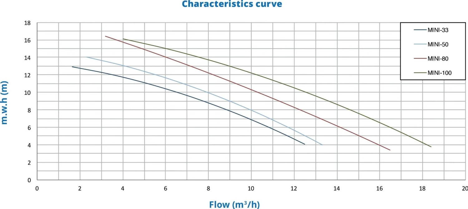- De Micro (normaalzuigende) en Mini (zelfaanzuigende) pompen hebben een pomphuis uit polypropyleen en een ingebouwd voorfilter met mandje voor grof vuil.