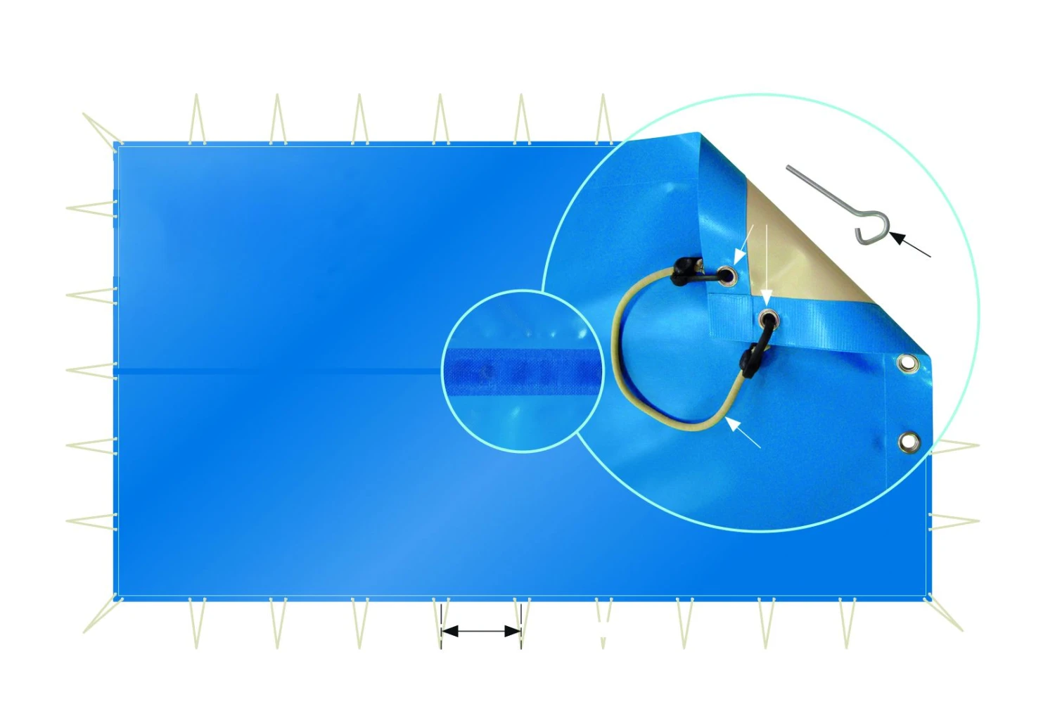 - Standaard grashaken voor bevestiging elke 80cm.